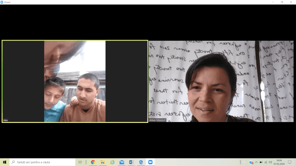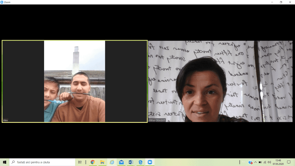 Am început cu Alex, cel mai mare dintre cei 8 frați, care are 18 ani, singurul care are acces la școala online. La doua ședință i s-a alăturat Matei, unul dintre frații gemeni de 12 ani. Vom face orele cu toți cei 8, pentru că vrem să le dăm o șansă tuturor.